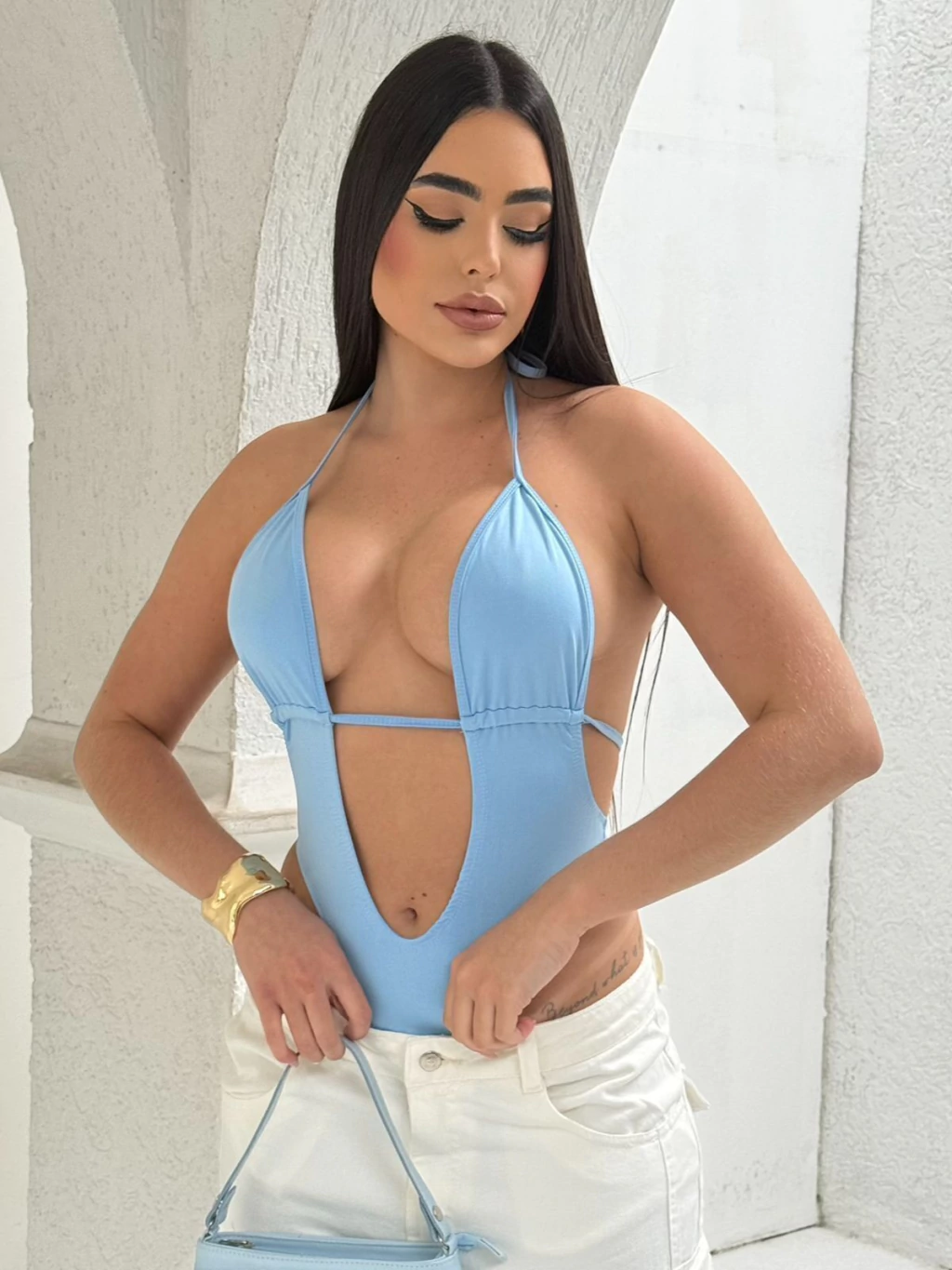 - Ajustável pela cordinha no busto.