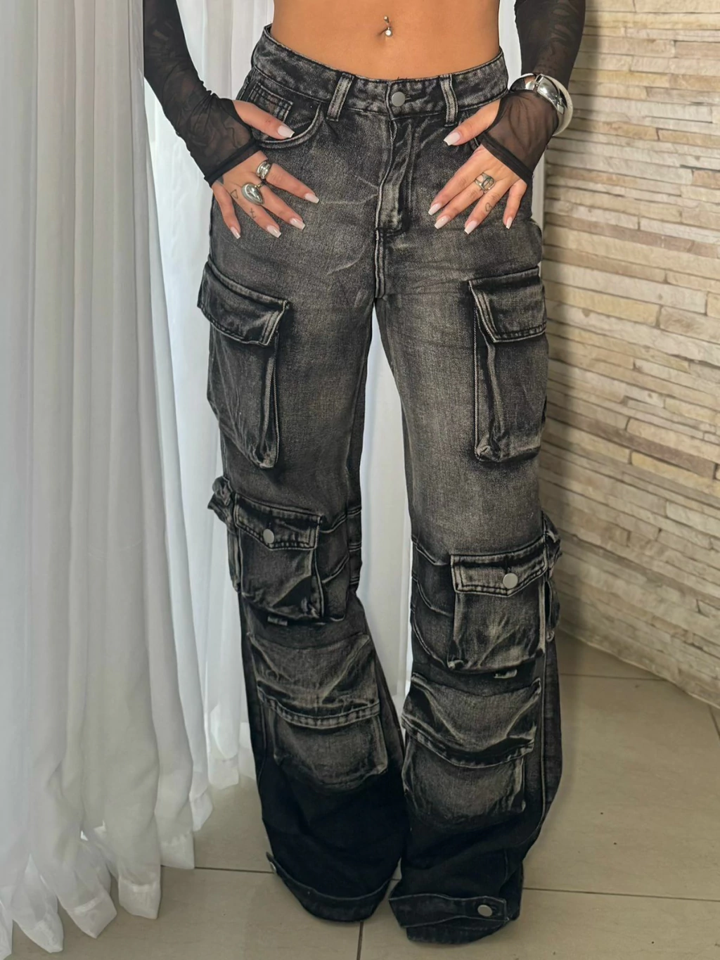 Calça jeans cargo Ludi