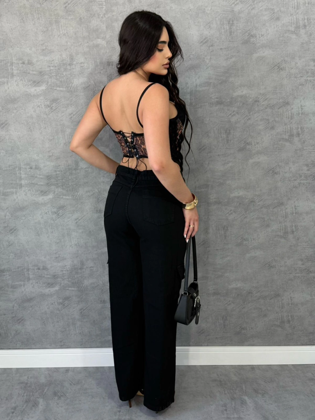 CALÇA JEANS WIDE LEG CARGO PRETO REF:0209A