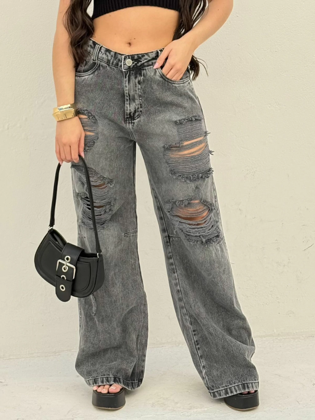 CALÇA JEANS WIDE LEG MAX DESTROYED GRAFITE 13100
