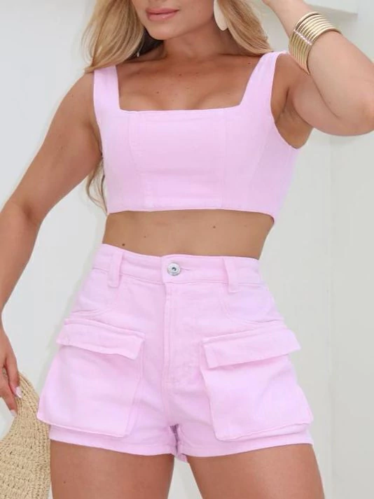 - Possui bolsos e botão no short;